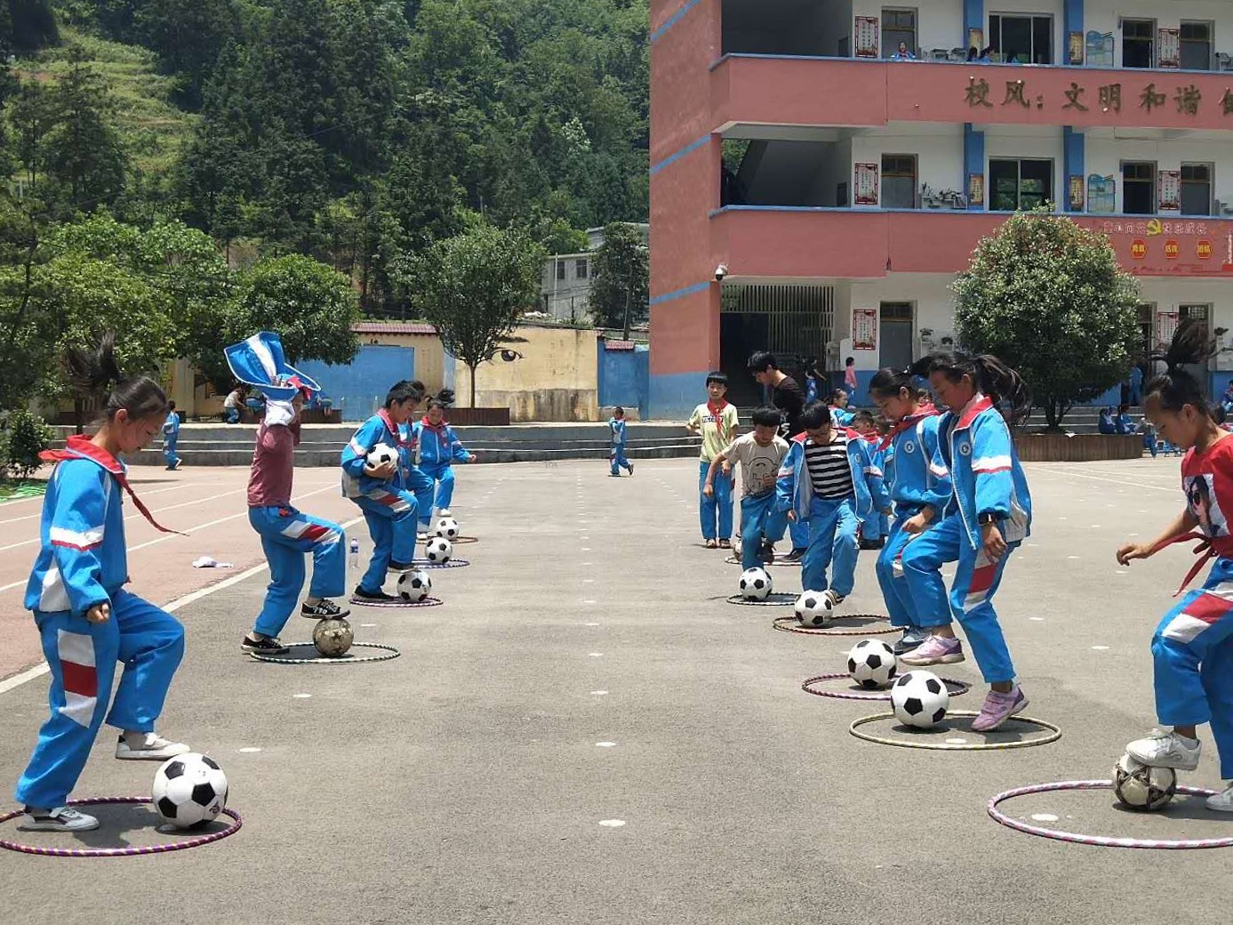 后来我经常去问其他老师的教学建议,虽然我教得是体育课,会有不一样的地方,我就结合着调整,从低年级的要教基本队形、准备活动,到高年级的专业训练,不同学生用不同方法,经过大半年的学习实践下来,我开始明显看到孩子们的变化,让他们通过专业的训练来增强体质。