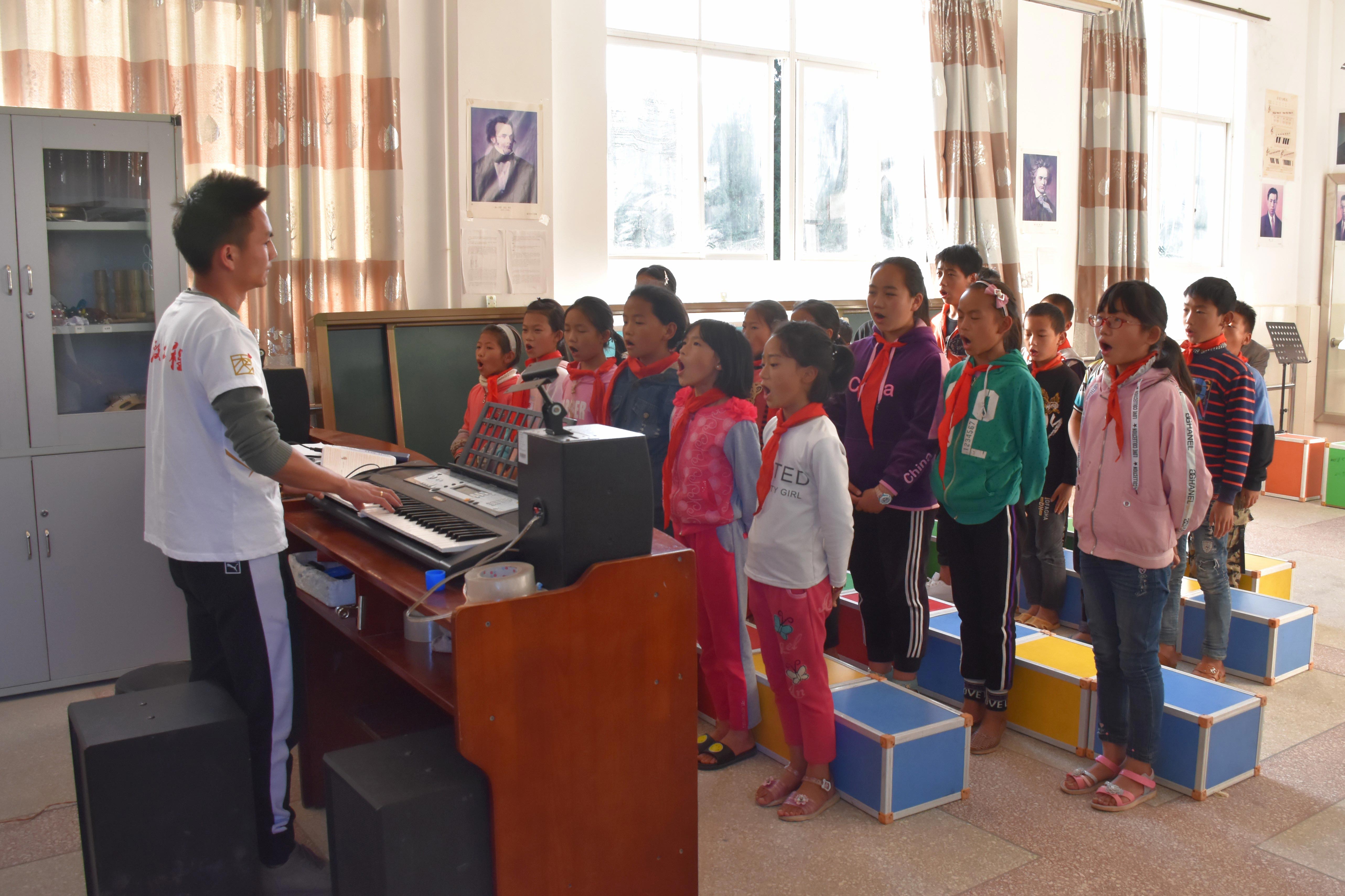 在音乐方面,我们学校四年级学生张兴旭受邀参加阿昌族歌曲录制。学校合唱队在2019年9月获得新华乡庆祝中华人民共和国成立70周年歌咏比赛第三名。每学年两次的文艺汇演,孩子们的表演也成为学校最大的亮点。