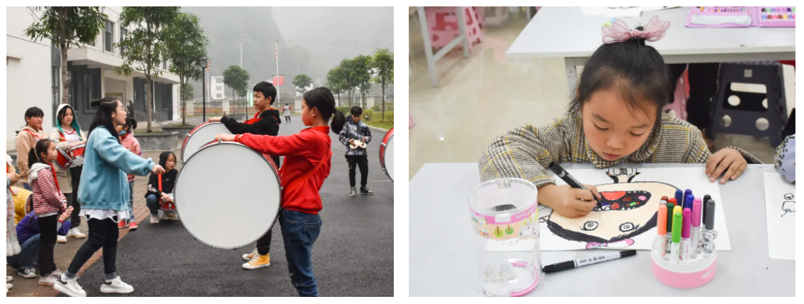 学校的陶笛队、合唱团、舞蹈队、鼓号队、篮球队等多元化的活动内容,在资教教师们的努力下,慢慢有了美好的模样……