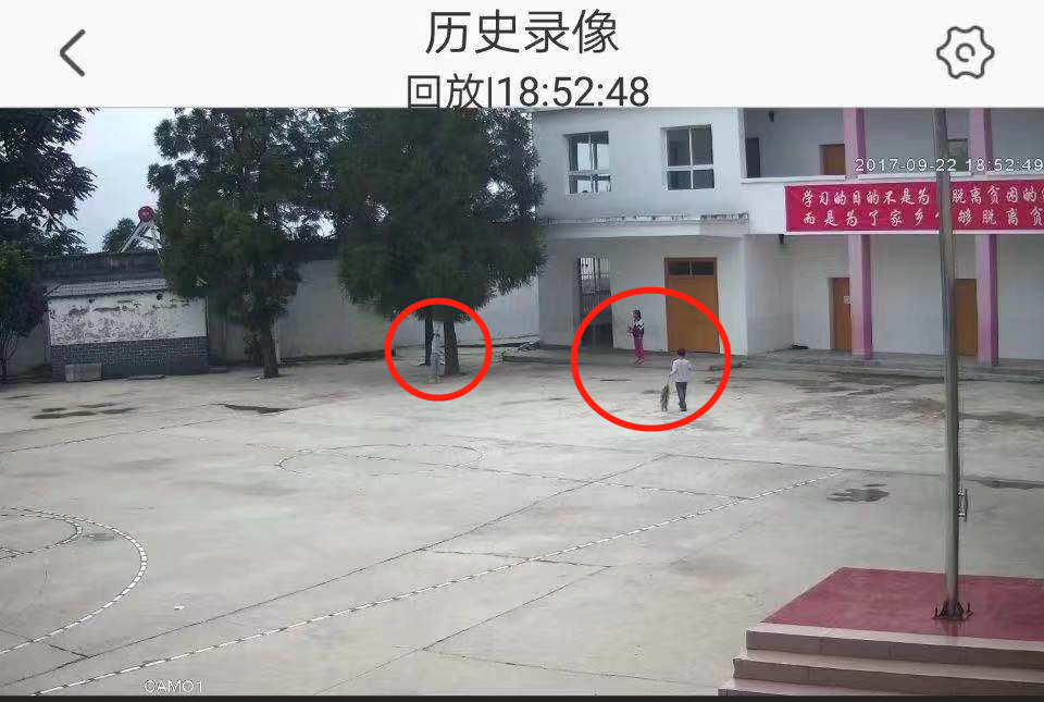监控画面中,几个个子本就不高的孩子一直蹦跳着去摘树上的叶子,然后铺在地上,再把红薯放在叶子上,然后就静静地离开了。