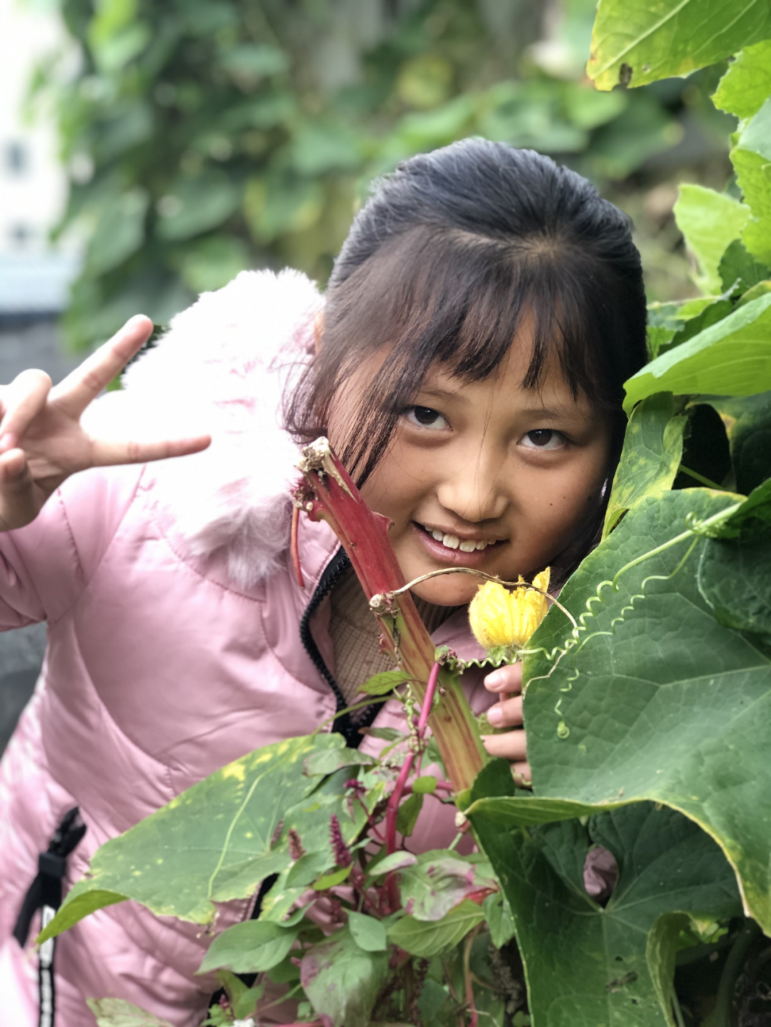 资教教师们去家访那天,就和女孩一同来到了山上。女孩在找野菜的过程中,脸上都洋溢着幸福的表情。歪歪扭扭的野花,呲溜呲溜窜的“土狗儿”,刷刷作响的树叶,仿佛想弹奏一曲。这一路的风景,让我们也十分欢喜。