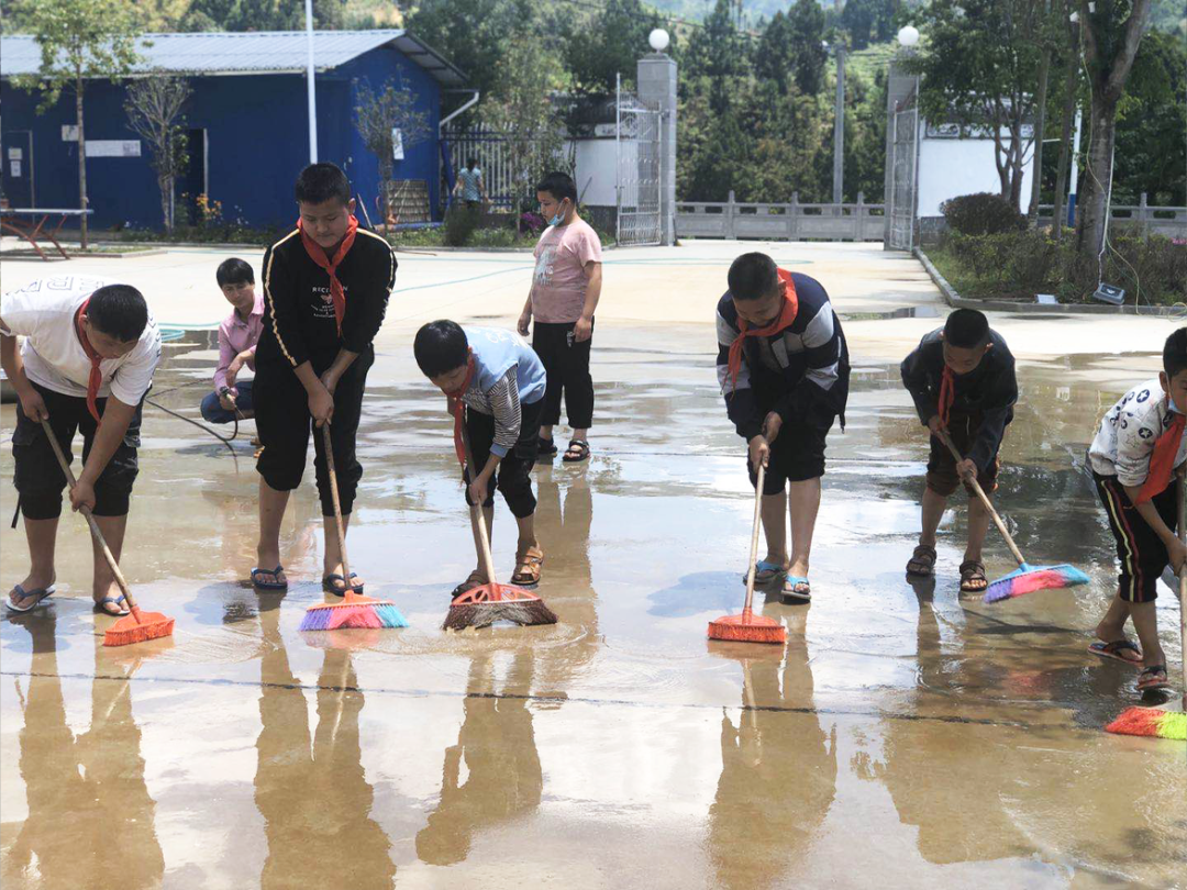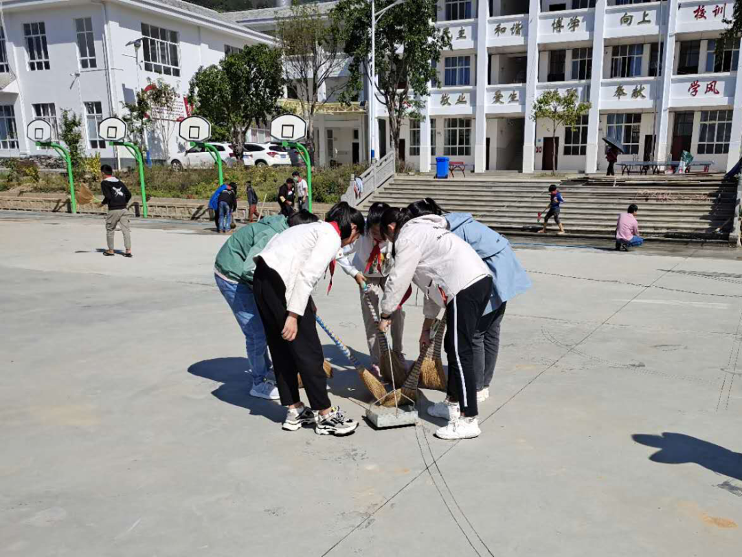 开学第一天,齐心协力大扫除,师生们一起努力,让校园再次焕发生机。