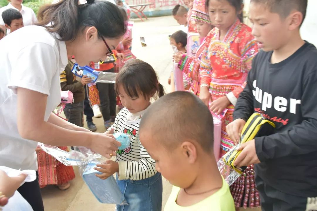 看到孩子们一张张天真的笑脸,4小时艰难上山的疲惫感似乎瞬间消失,赶紧忙活起来,从搬运物资的车后把为孩子们准备的精美礼物送给他们!收到礼物的孩子们,或环抱在胸前,好好地护着,或抓在手上,跑去跟教师炫耀……我们希望带给他们更多的爱,而他们也会把每份爱好好收藏。