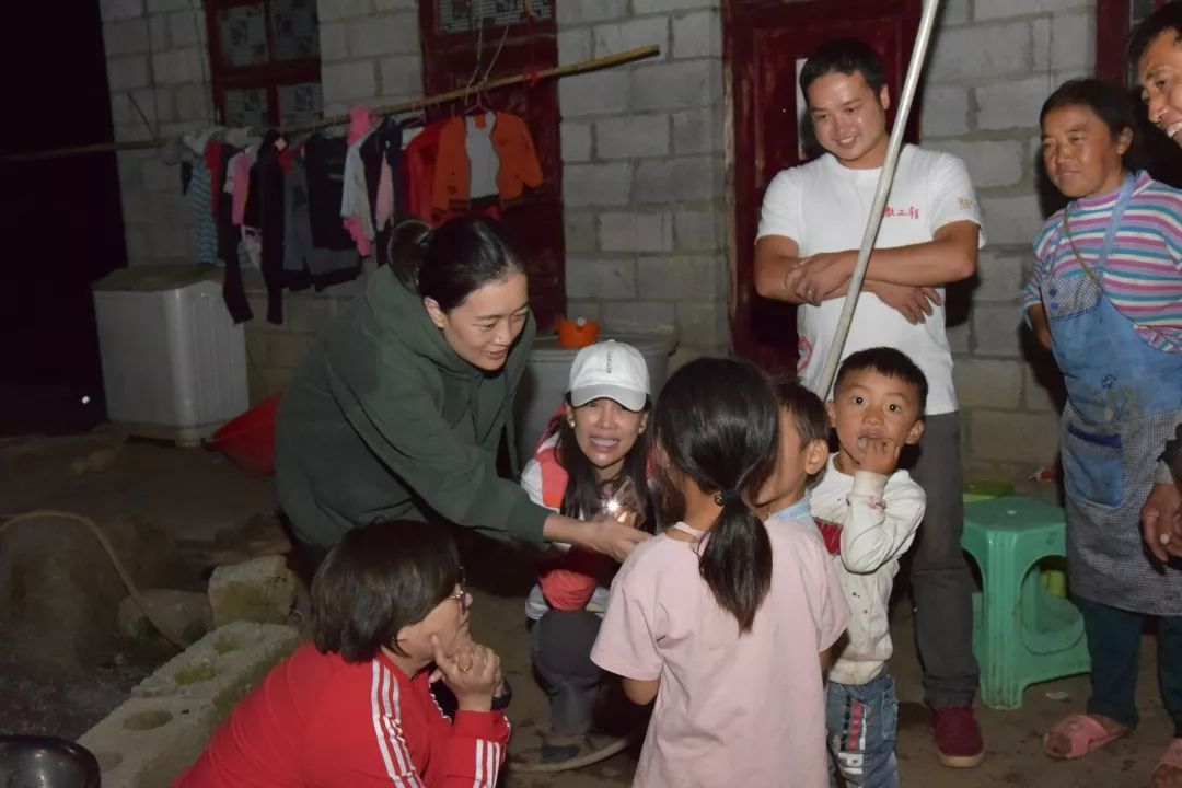 傍晚入夜,借着手机的灯光,我们去到了几位留守儿童的家中,家里比较简陋,爷爷奶奶在忙着家务,看到有客人来,赶紧停下手中的活儿,端上凳子招呼进来坐。“孩子父母虽然一年回来一两次,见得不多,但孩子懂事儿,还是开开心心,也认真读书。”其中一位孩子还与刘莎莎女士作出了承诺:下次考试一定考到90分。