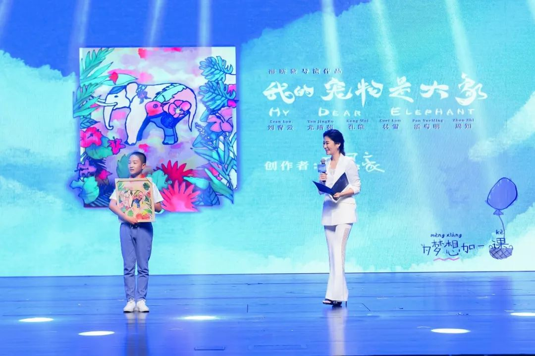▲本次慈善汇演由传梦大使、知名青年学者毕啸南、资教项目学校学生刘思思、传梦公益理事长张蕾联合主持