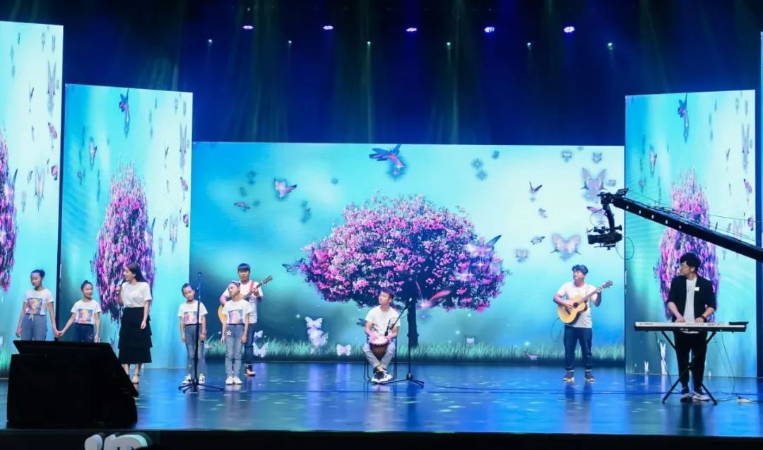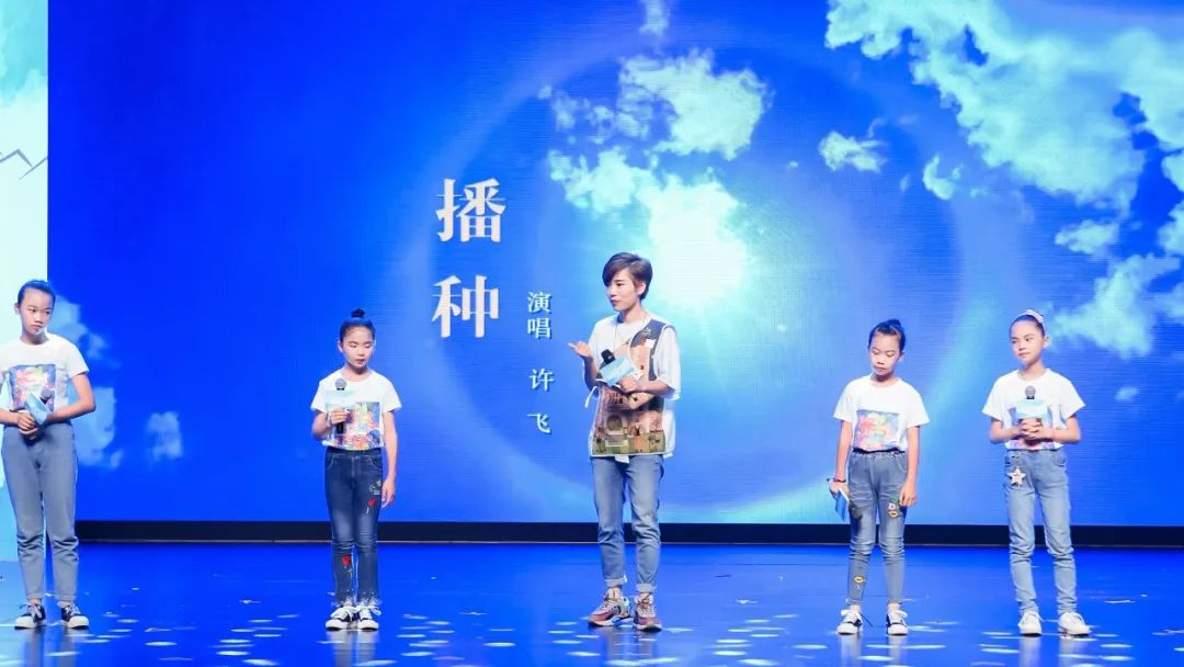 ▲许飞和孩子们演唱传梦公益主题歌《播种》