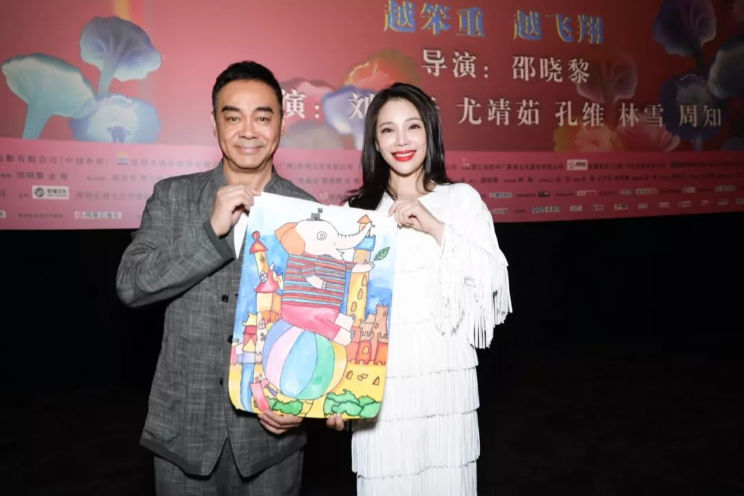 ▲虞婷与学生汤燚萍,汤燚萍的作品《花火》拍得2.8万元善款