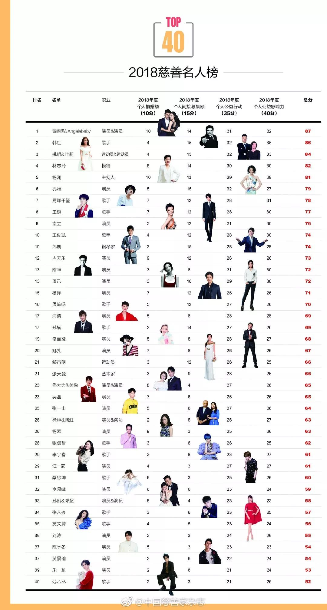 2018中国慈善名人榜发布 | 黄晓明 孔维双双上榜