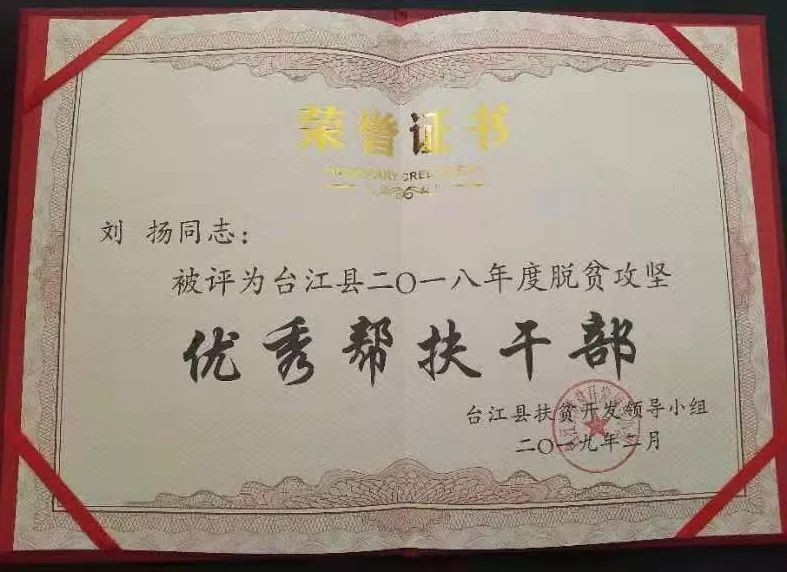 不久前,贵州省台江县政府对传梦公益基金资教工程项目学校、台江县南省小学(029号资教小学)的资教教师刘扬、王明、吴丹、杨小苗作出表彰——不只是因为他们在教学上的优异成绩,而是他们在教书育人的同时,还为当地脱贫攻坚工作做出了突出贡献——表彰他们为台江县2018年度优秀帮扶干部。