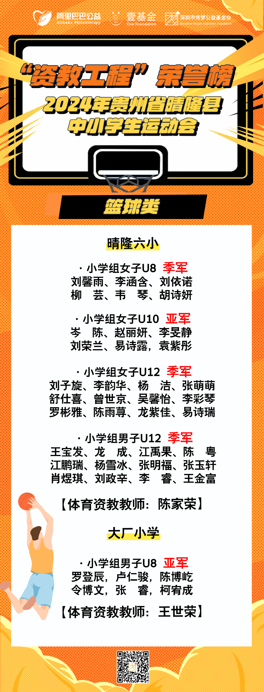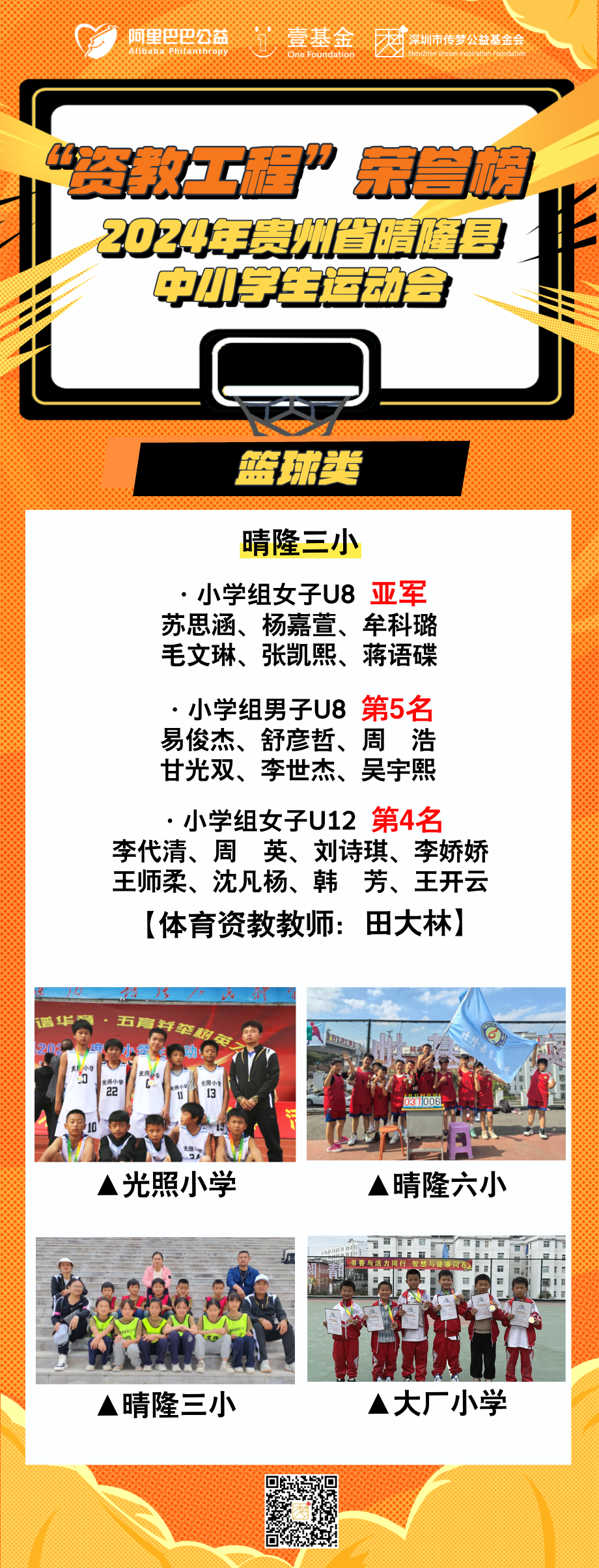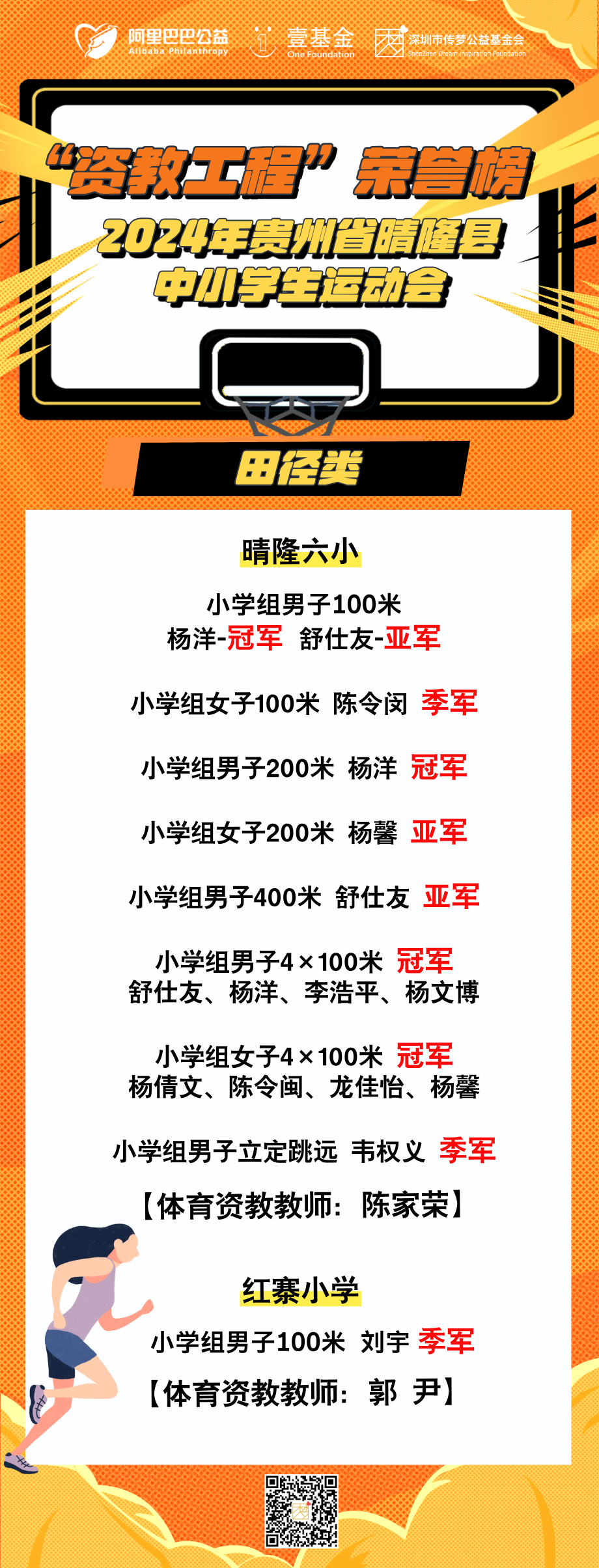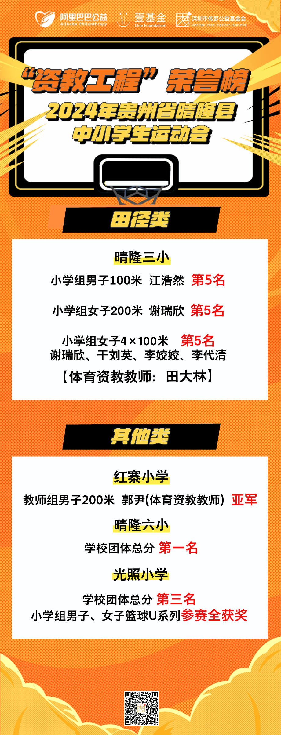 在『2024年贵州省晴隆县中小学运动会』中,“资教工程”项目多所乡村学校师生携手努力、披荆斩棘,在篮球、田径类等多个体育项目均取得了优异成绩,冠军亚军季军,均收归囊中,多项赛事均有“资教工程”项目学校位居前列!祝贺每一个参赛的乡村孩子和资教教师,无论什么名次,你们都是最闪耀的光!