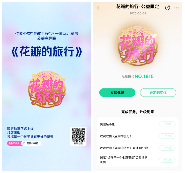 即可获得公益限定勋章,在QQ音乐主页佩戴啦