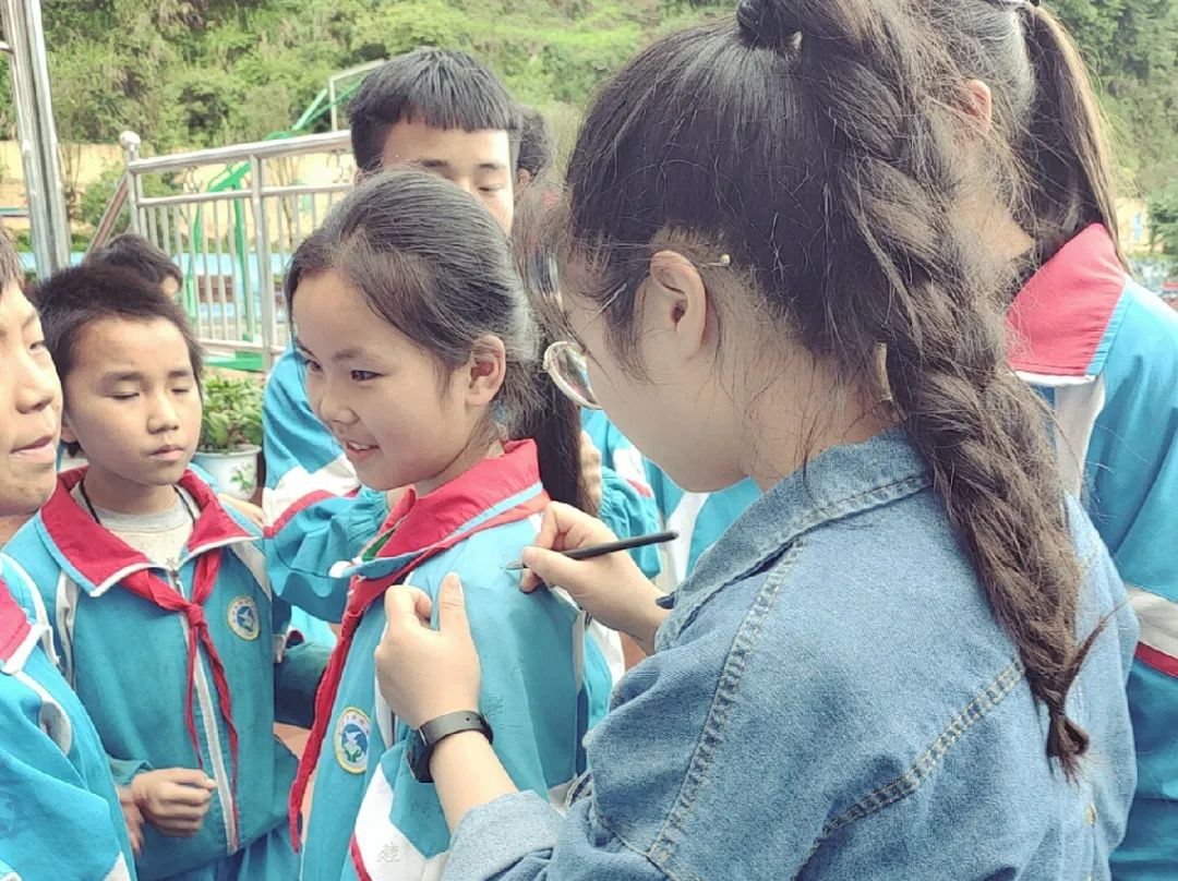 毕业季如期而至,学校的孩子们都特别高兴。一见到美术卢巧巧老师就冲过去抱着说:“卢老师,以后还能见到你吗?好舍不得你啊!能帮我签个名吗?”