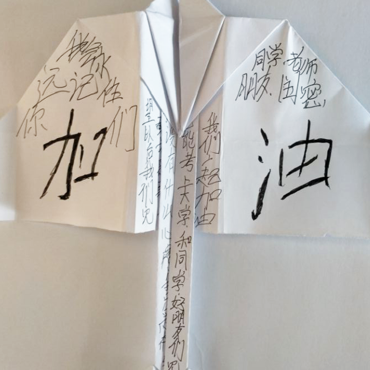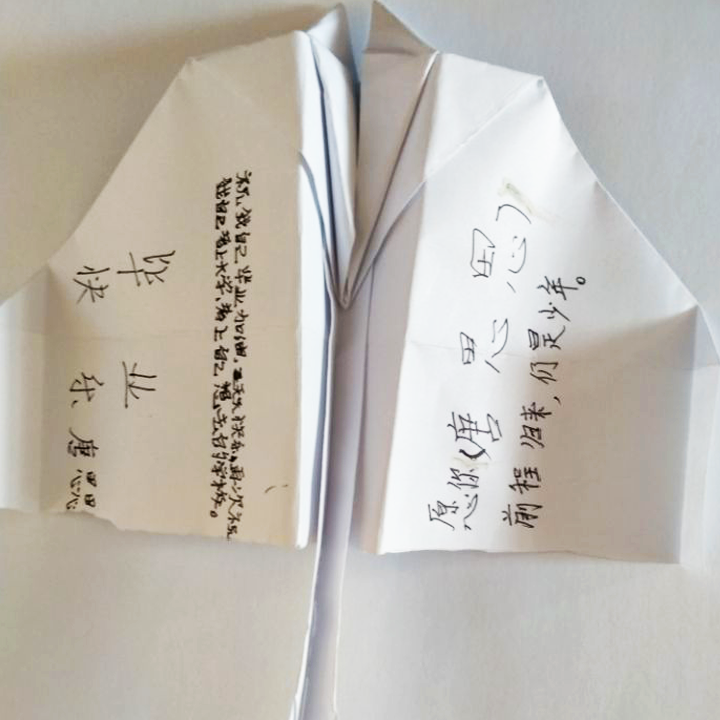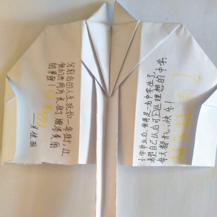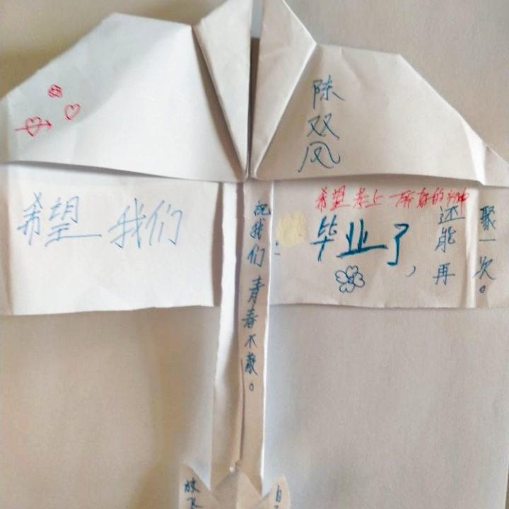 为了让毕业更特别、更有仪式感,资教教师们特别安排了一个课间活动:让每个孩子都折一个纸飞机,上面写上自己对未来的期待,然后再一起在操场上放飞。