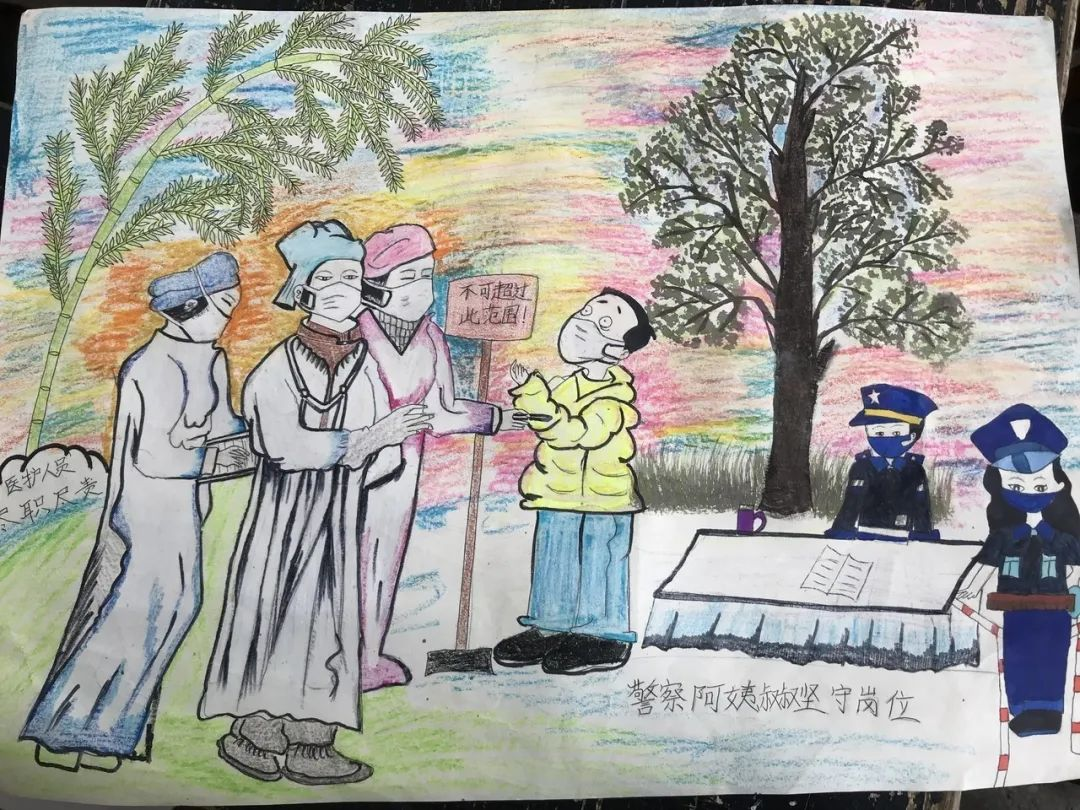 疫情期间,坚守岗位的人民警察、超市员工、社区的叔叔阿姨……他们的温暖坚守在我们的“画”里。