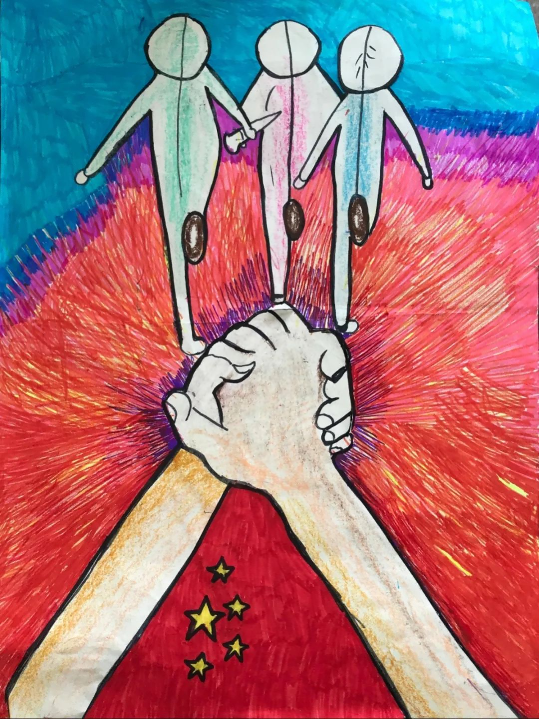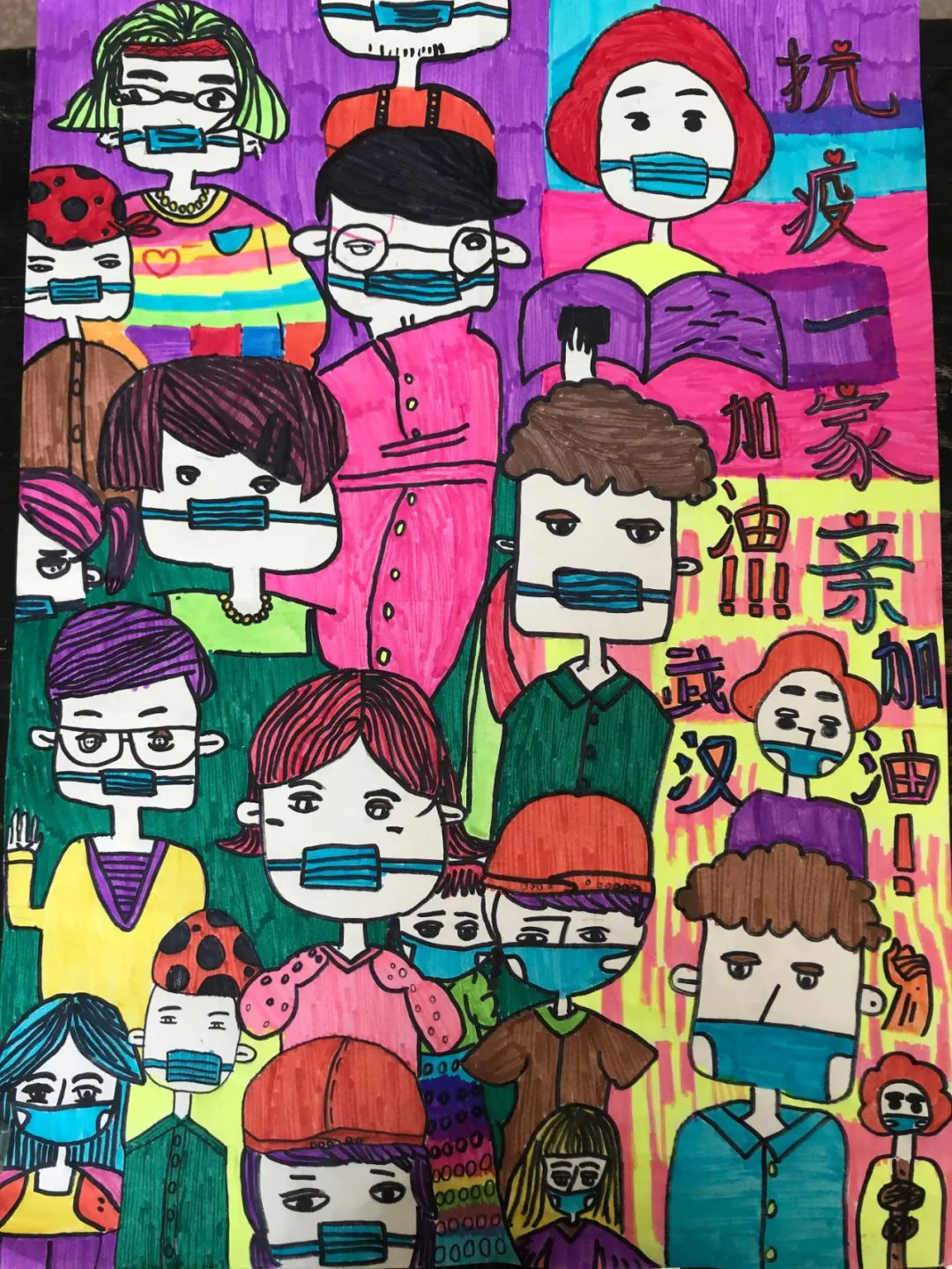 每一个孩子都有对疫情不一样的理解,在资教教师的引导下,他们敢于用多彩的方式、用大胆的创意,抒发着属于他们青春的声音,为抗击在疫情一线的医护人员、人民警察、社区工作人员等加油助威,彰显着新一代青少年最热血的态度。