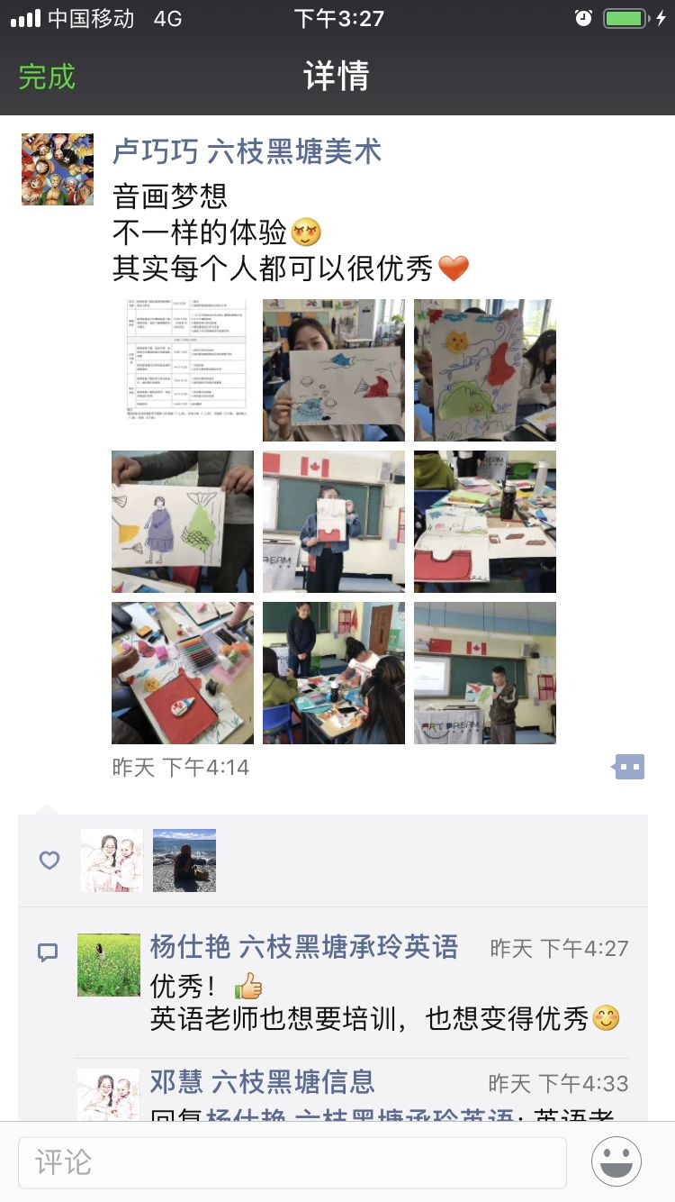 老师们参加完培训课程都兴奋得分享朋友圈,每一次的培训都会让他们有新的领悟和灵感。