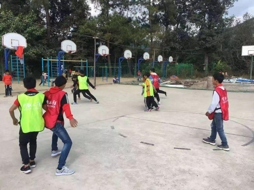 ▲ 云南省腾冲市象山完小(006号资教小学)的篮球友谊赛,传梦绿队VS传梦红队。
