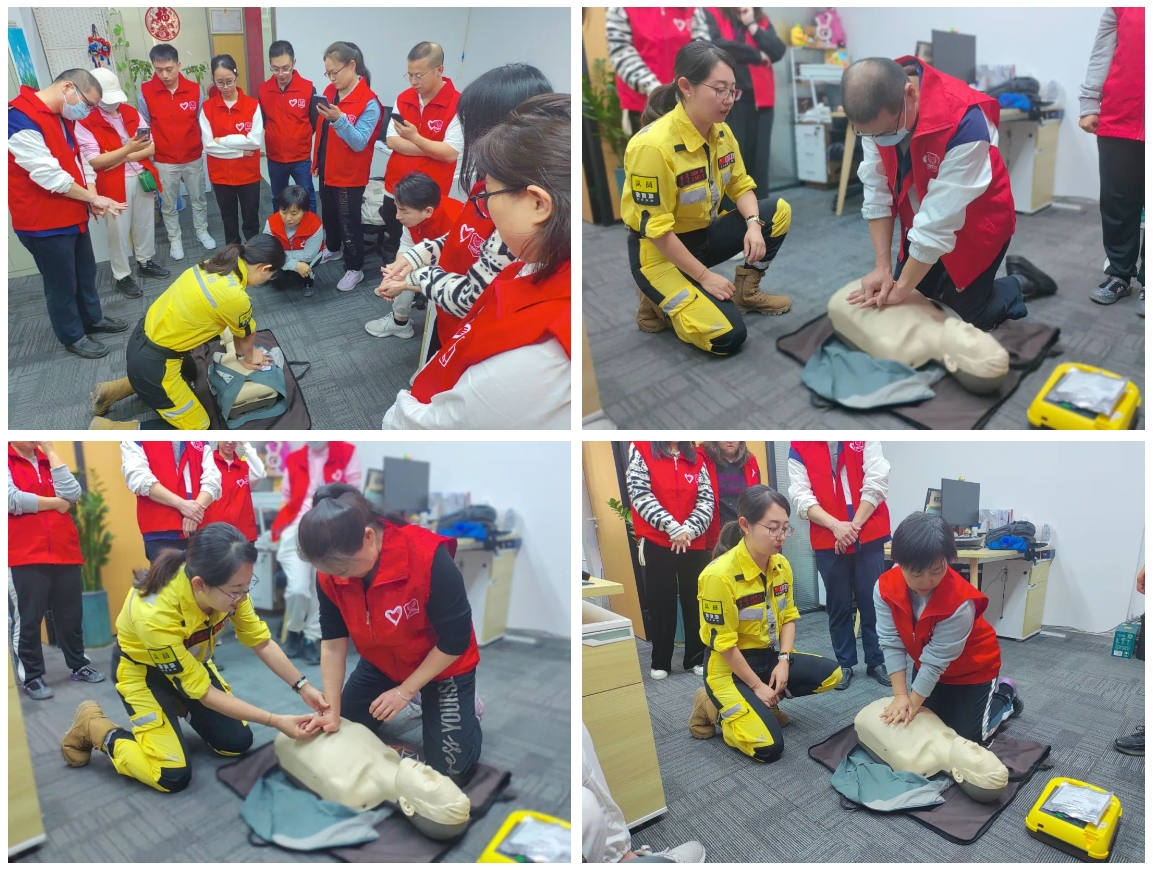 参训人员积极互动,踊跃提问。最后,所有参训人员都逐一进行实操演练,老师现场对每个人的动作进行指正,确保了大家都能正确掌握急救方法。