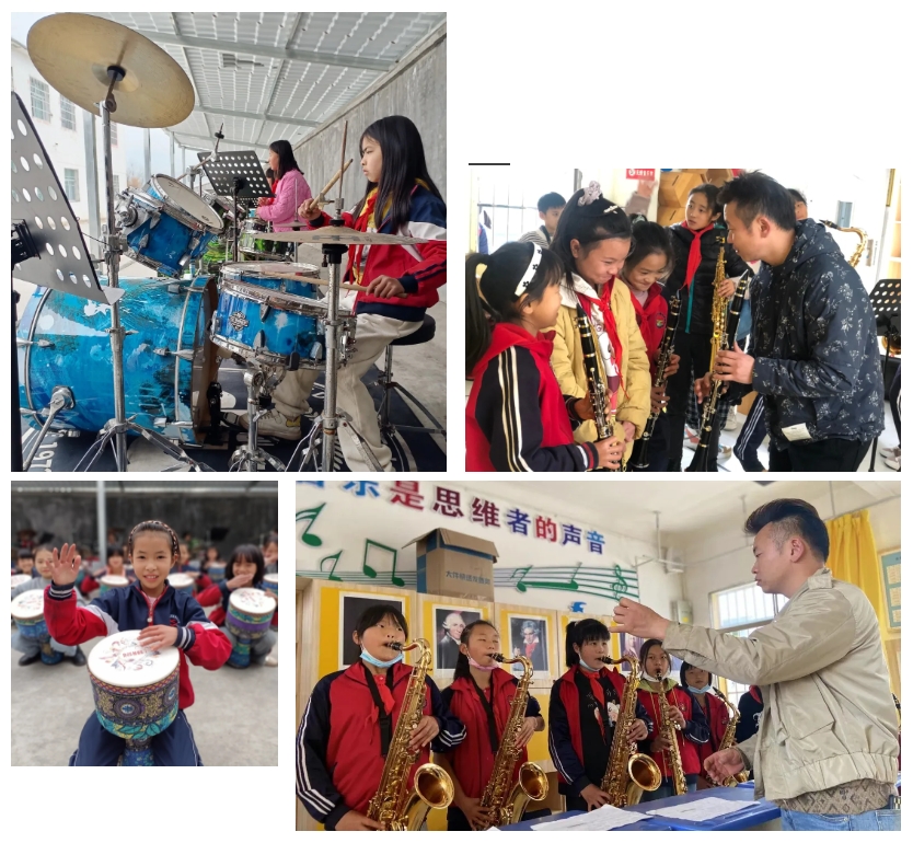 在偏远的乡村学校中,常会有爱心人士捐赠的各种乐器,但由于缺乏专业的音乐教师指导,或是现有教师并不擅长所捐乐器,导致许多乐器未能发挥应有的作用,只能被闲置在角落。