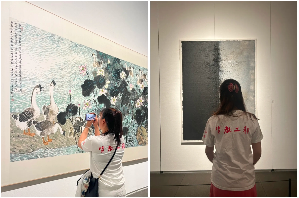 参观过程中,老师们不停地拍照录像,她们说:“我希望把这些艺术作品带回去,开学后分享给孩子们,让他们也能一起享受这场艺术盛宴。”