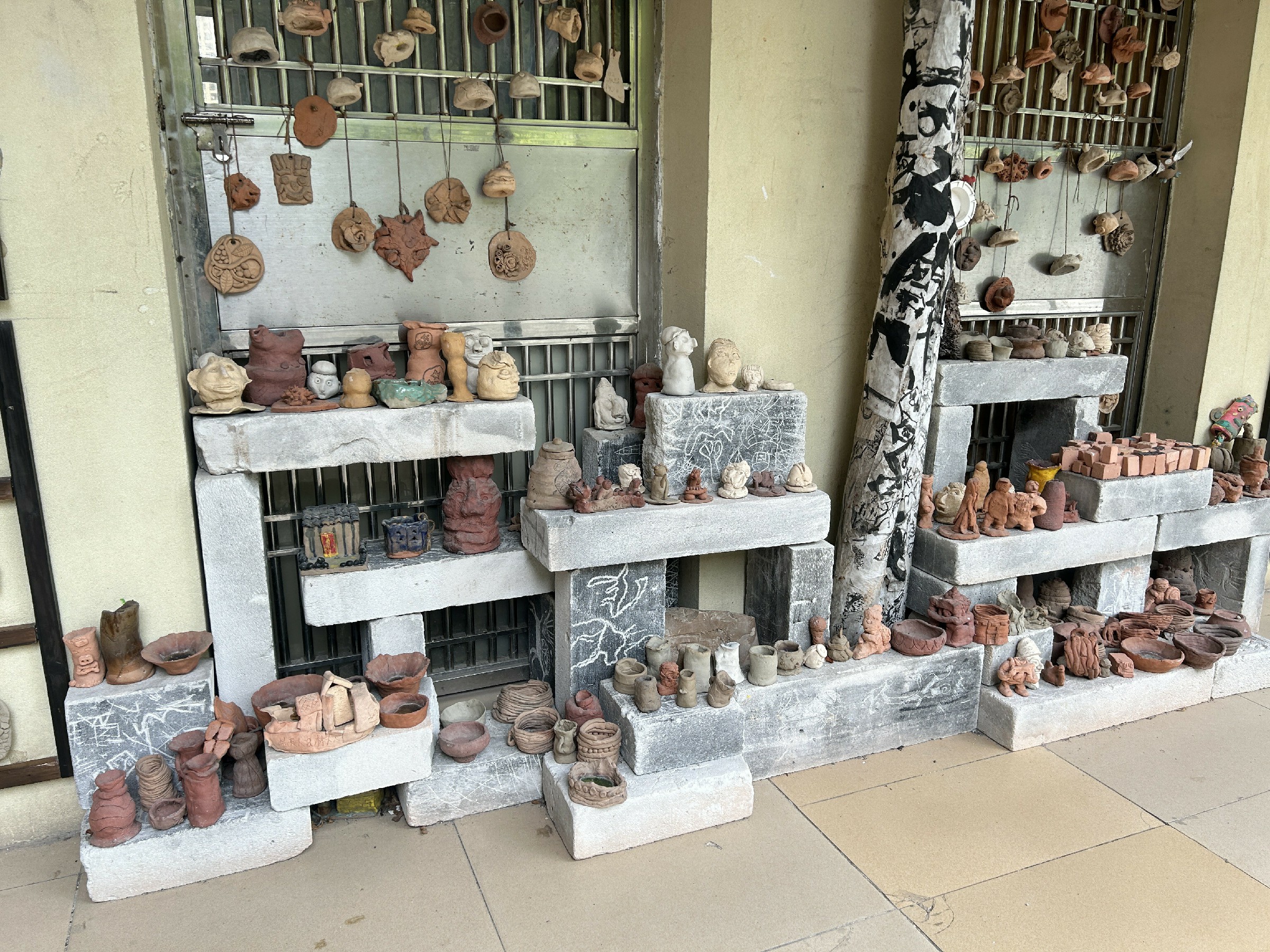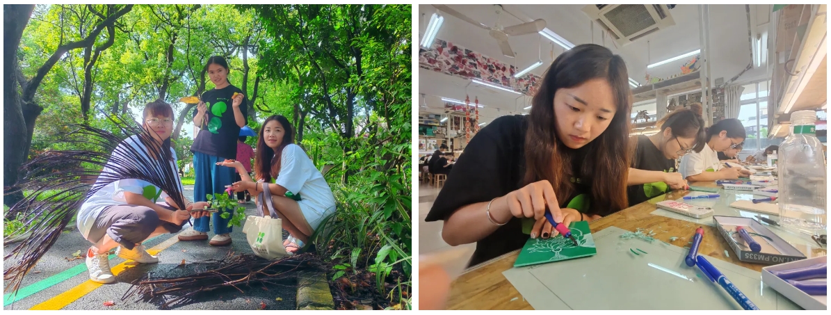 从一片落叶到一根树枝,从一块石头到一片塑料,一切自然界的元素都成了创作的灵感源泉。在培训期间,老师们不仅学习了装帧设计、陶艺创作、点彩绘画、胶板版画、刺绣学习和公园自然环境材料写生创作等丰富的课程,更学会了如何利用身边的一切物料进行美育,创造无限的可能。