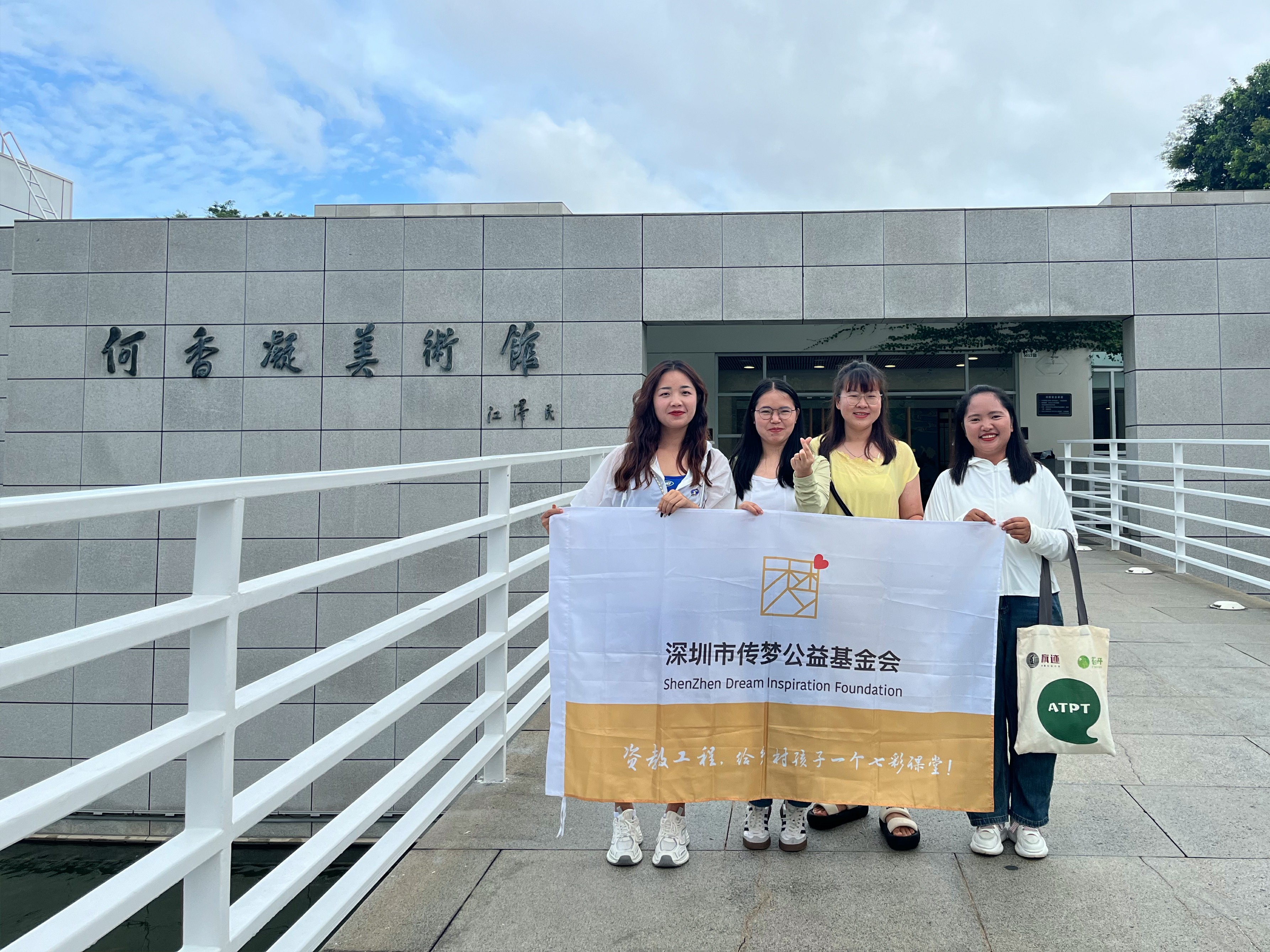 进一步丰富老师们的专业培训、拓展艺术体验,8月1日至2日,传梦公益邀请了四位老师转场深圳,带领大家先后参观了近期在何香凝美术馆、深圳美术馆展出的近10个不同风格的艺术展览,包括《何香凝——艺术精品陈列》《应天齐当代艺术展——这不是废墟》《陈漫的摄影展——“同”SAME》《书间梦蝶——国风藏书票特展》等等,感受多元艺术魅力。
