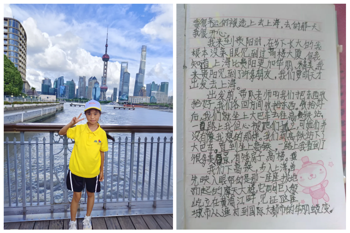 这个夏天,王子琴有幸被选入参加 “爱在贵州·慈善童行” 夏令营,成为 27 个来自贵州各市州的孩子之一。这是她人生中许多个 “第一次” 的开始:第一次坐高铁,第一次走出贵州省,第一次见到跟家乡青山一般高大的上海中心大厦和东方明珠,第一次走进各大博物馆了解中国历史,第一次结识了来自不同地方的小伙伴一起学习一起玩耍……