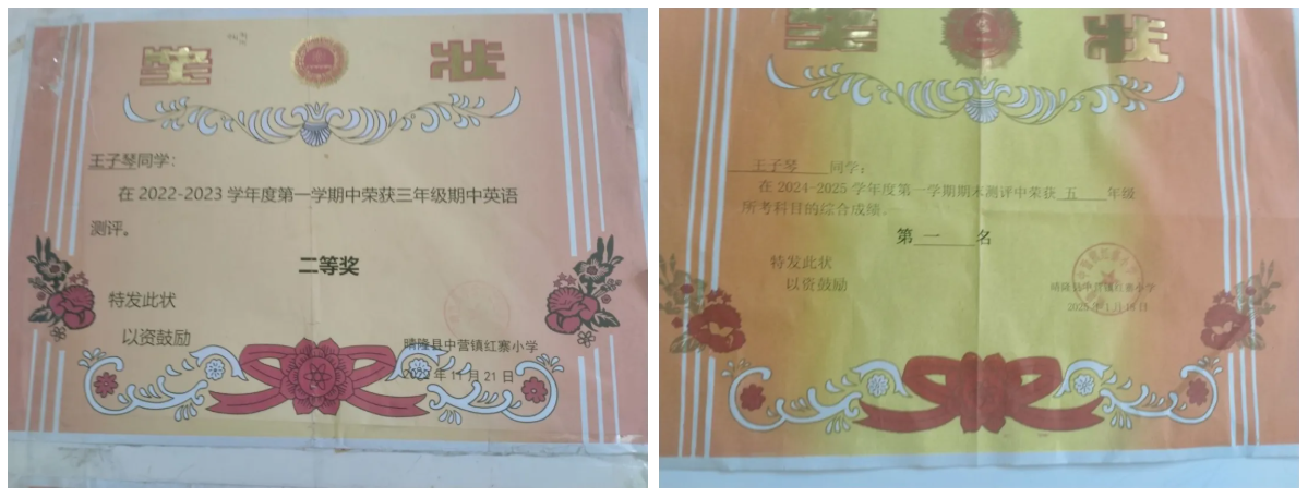 突破改变是从一张“三年级英语二等奖”奖状开始的。那天她攥着奖状跑回家给奶奶展示,可把奶奶高兴坏了。此后,她获得的奖状越来越多。今年年初,王子琴在期末考试中取得了五年级所考科目综合成绩第一名的优异成绩。